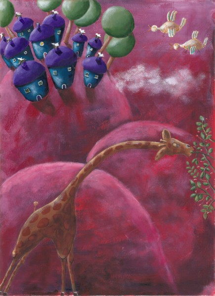 C’era una volta una giraffa curiosa che era però anche tanto golosa, brucava le bacche in una vallata e se le gustava tutta beata.